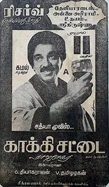 Kaakki Sattai (transl. Khaki Shirt) is a 1985 Indian Tamil-language action film directed by Rajasekhar, starring Kamal Haasan, Ambika, Maadhavi, Sathyaraj, Rajeev and Thengai Srinivasan. The film, released on 11 April 1985, during the week of Puthandu, became a major box office success.[1] It was loosely remade in Hindi as Guru (1989).[2]