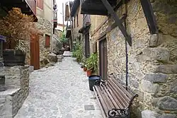 Kakopetria is a town in Cyprus located 55 kilometres (34 mi) southwest of the capital, Nicosia, on the north-facing foothills of the Troodos Mountains.[2] It stands at an altitude of 667 metres and it is the highest village in the Solea Valley.[2] The community has about 1,200 permanent inhabitants and a couple hundred more who either have a summer house or are originally from Kakopetria but work in Nicosia. Near Kakopetria there is church from 11th century, Agios Nikolaos tis Stegis, UNESCO World Heritage Site.