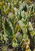 The species is closely related to Kalanchoe fedtschenkoi, sharing the same habit, biology and ecology.[3]