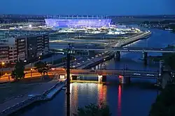Kaliningrad Stadium (Russian: Стадион Калининград), known for sponsorship reasons as the Rostec Arena (Russian: Ростех Арена) since August 2023, is a football stadium on Oktyabrsky Island, Kaliningrad, Russia, which hosted four games of the 2018 FIFA World Cup.[2] It hosts FC Baltika Kaliningrad of the Russian Premier League, replacing Baltika Stadium.[3]
