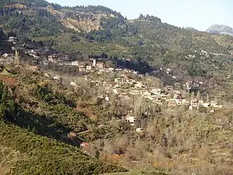 Kaloskopi was badly damaged during the German occupation. The contribution of the village to the resistance struggle is worth mentioning, as well as the large number of fighters that died during that period.[6] On August 15, 1942 in Kaloskopi, Aris Velouchiotis took an oath with Papamiltos in the ELAS team. Kaloskopi came against the conquerors in frequent raids and bombings and it was a Martyr village.[7] The village was burned down twice in the same year by the German occupiers, at Easter and in August 1944. The ensuing civil war also left its mark on Kaloskopi. The inhabitants were displaced for three years, while in October 1947 a clash took place in the village between sections of the Democratic Army of Greece and the Mountain Commando Unit.[8] At that time, many locals emigrated abroad (America, Australia) or to large urban centers (Athens, Lamia, Thessaloniki) in search of better living conditions.