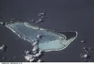 The eastern and southern shorelines of the island have accumulations of coral debris, the result of a violent storm that hit the area in 1847. It has a lagoon area of 25.6 km2 (9.9 sq mi).