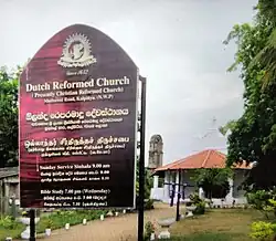 Scholars identify the Sinhalese name "Kalapiti-Kuli which is mentioned in Sigiri graffiti as modern Kalpitiya"[2] According to another theory, Kalpitiya is derived from the Tamil name Kalputti, stemming from the words kal meaning stone and putti meaning elevation.[3] The place was in ancient times also known as Arasadi, meaning in Tamil "place of Arasa tree".[4] The place was in colonial era known as Calpentyn.[5]