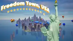 Freedom Town, USA was inspired by New York City and featured multiple minigames. In one game, players were tasked with collecting materials to build houses.[93] Another game featured exploding footballs, a reference to Tim Walz's career as a high school football coach.[97] In-game political signage, models, and audio cues were also features of the map. In one instance, an audio clip of Donald Trump saying "they're eating the dogs, eating the cats" played when the player collected a cat.[92][98][99]