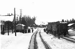 Upon the foundation of the station, a village began to form around in the mostly uninhabitated area. Some industry developed as well; the Halimaa sawmill was founded in the 1920s, operating for about 30 years.[5] Passenger numbers at Kangasala grew quickly over its first two decades: 16,098 in 1900, 19,079 in 1905, 26,569 in 1910, and 36,512 in 1920.[4] At first, the railyard had four switches, the number of which later expanded to six, and at its fullest extent, approximately 1.3 kilometres (0.81 mi) of track.[2]