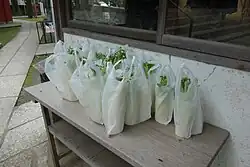Daikon offered to Kangiten made available to devotees (お下がり, o-sagari; cf. the Hindu prasāda) at Matsuchiyama Honryū-in (Matsuchiyama Shōden), Asakusa, Taitō City, Tokyo