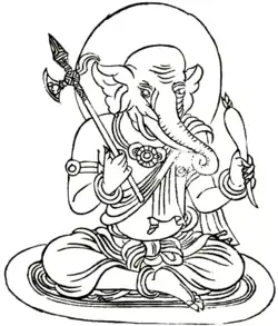 Kangiten or Kankiten (Japanese: 歓喜天, "god of bliss";[1] Sanskrit (IAST): Nandikeśvara), also known as Binayaka (毘那夜迦; Skt. Vināyaka), Ganabachi (誐那鉢底, alternatively Ganahachi or Ganahattei; Skt. Gaṇapati), or more commonly, Shōten or Shōden (聖天, lit. "sacred god"[2] or "noble god"[3]), is a deva (ten) venerated mainly in the Shingon and Tendai schools of Japanese Buddhism who is the Buddhist equivalent of the Hindu deity Ganesha.[2][4][5][6]
