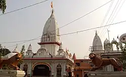 - Daksheswara Mahadev Temple - Kankhal is most known for the ancient temple of Daksheswara Mahadev temple,[13] situated in the south Kankhal town. The present temple was built by Queen Dhankaur in 1810 AD [14] and rebuilt in 1962.[2][15][16] Next to the temple is the 'Daksha Ghat' on the Ganges, and close by is the Nileshwar Mahadev Temple. Much of the details of the famous Ashvamedha Yagna (Horse Sacrifice) of Daksha are available in the Vayu Purana[2]