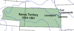 Capital | Pawnee (provisional; July 2–6, 1855) Fort Leavenworth (provisional) Lecompton (1855–61) Lawrence (de facto, 1858–1861) | ||||||||||