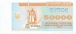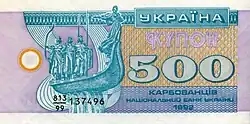 | Preceded by: Ukrainian karbovanets Reason: Independence (on August 24, 1991) | Currency of Ukraine 1992 – 1996 | Succeeded by: Ukrainian hryvnia Reason: inflation (on September 2, 1996) Ratio: 1 hryvnia = 100,000 karbovantsiv |