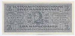 Banknotes were introduced in June 1942 in denominations of 1, 2, 5, 10, 20, 50, 100, 200, and 500 karbovantsiv (called Karbowanez in German). The banknotes were in dark colour, carrying nearly all inscriptions in German and a warning in both German and Ukrainian stating "falsification of banknotes is punished by imprisoning". The obverse of the notes all featured a portrait, including children, a peasant, a miner, a seaman, and a chemist. The Nazi Reichsadler also appeared.
