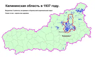 ![]() Karelian National Okrug on the map of Kalinin Oblast | |