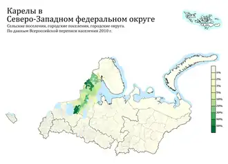 In the 2021 Census,[21] there were 25,901 Karelians in the Republic of Karelia, only 5.5% of the population. Meanwhile Russians now make up 86.4% of the population in Karelia. The total number of Karelians in Russia was 32,422, or 0.02% of the country's population.