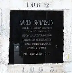 - ^ "Bramson Karen (1875-1936)" (in French). Amis et Passionés du Père-Lachese; Écrivains - Poètes - Littérateurs; 87eme division (Columbarium). 16 March 2008. Archived from the original on 4 May 2015. Retrieved 21 May 2015.