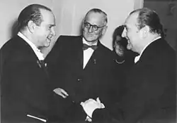 Karl Laux (middle) 1954 after a concert in conversation with David Oistrach (right) and Generalmusikdirektor Franz Konwitschny.