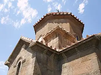 According to Thierry, Surp Astvatsatsin marks a turning point in Armenian architecture, with its plan in the shape of a cross with a single dome setting a style that would be repeated over the centuries in spite of other influences.[1] Other churches of a similar style attributed to the 6th or 7th century are St. Marine of Artik, Lmbatavank, St. Astvatsatsin of Talin, and St. Astvatsatsin of Voskepar.