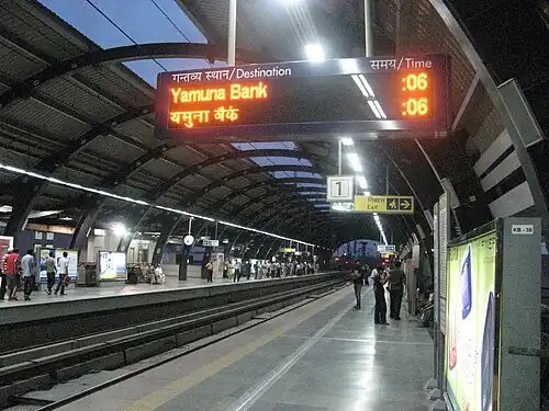 The nearest railway stations are Delhi Sarai Rohilla and Delhi Kishanganj, both about a kilometer from Central Karol Bagh. Karol Bagh is situated at a distance of 20 – 22 km. from the Indira Gandhi International Airport, and 4.1 km. from New Delhi Railway Station.[13] It is also serviced by the Karol Bagh Metro station, located on the Blue Line of the Delhi Metro.