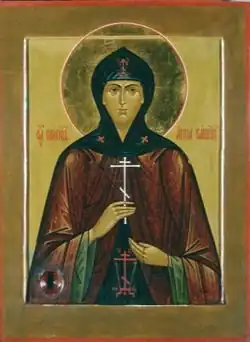 It is unclear when Kashin was founded, with plausible dates in the 12th and the 13th centuries, and it is reliably mentioned in 1287, when it belonged to Principality of Tver.[9] Since 1319, Kashin was the center of Principality of Kashin, which was first dependent on the Principality of Tver. In fact, Vasily, the first Prince of Kashin, was the son of Mikhail of Tver, and his mother and the wife of Michael, Anna of Kashin, lived in Kashin for the last years of her life. She was later canonized and is considered to be a saint protector of the town. Later, Kashin Principality was slowly drifting towards the Grand Duchy of Moscow. In 1375, it was accepted as an independent principality subordinate to Moscow, then between 1382 and 1399 it was a part of Principality of Tver, and in 1485 it was formally annexed by Moscow and abolished. In 1609 and 1612, during the Time of Troubles, Kashin was badly damaged by the Polish troops.[10]