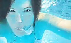 She has developed her own recognizable style. In her paintings, reality is difficult to separate from fiction. Hyperrealistic literality of details is not only a stylistic effort, but rather a manifestation of a certain perception of reality. Domanska’s paintings relate to the reality of uncontrolled permeation of imitation and original. The literary meaning of seemingly banal and superficial beauty of reproduced objects and situations is also the background of symbolic celebration of emotions, feelings, reflections and affirmations of nature.[3] Compositions from the “Pool” series make one’s soul feel blissful. Fatigue disappears, thoughts begin to circulate lazily.[4] By employing images of sunny beaches, bright blue sky, beach umbrellas, gentle waves, beautiful women in warm-hued bikinis and children playing in the sand, Ms Domanska presents a carefree, lazy summer, while at the same time challenging the definition of beauty with a carefully maintained distance.[5]