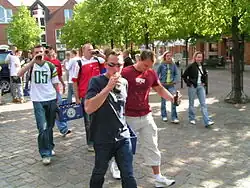 In Munich, kastenlauf events have been organized since 1982.[4] Kastenlaufs are also common among young people while en route to a beer festival, especially on its first day. As no application was submitted for the Harassenlauf in 2010, the canton of Baselland and the municipality of Münchenstein declared the event illegal. As the initiators and fans called for participation on internet forums and social media, the police responded with a large contingent. Around 400 police officers confronted around 200 Harassen runners. Apart from minor provocations and skirmishes, the confrontation between the law enforcement officers and the mostly young Harassenlauf participants was peaceful.[5]