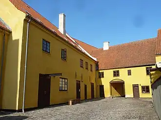 Kastrup Værk was founded around 1750 by Jacob Fortling, a German sculptor who had emigrated to Denmark in 1729 and established a successful career as Royal Master Builder in Copenhagen. As one of several operators, he was granted rights to extract limestone on Saltholm, a smaller island in Øresund otherwise mainly used for summer grazing, and built an extensive complex of buildings between 1749 and 1753. Constructed on reclaimed land, it included a lime plant, a tile works and a faience factory as well as a main building and gate houses.[1]