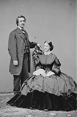 Chase married Rhode Island Governor William Sprague, a textile magnate, on November 12, 1863 at Chase's home in Washington. Sprague's wedding gift to her was a tiara of matched pearls and diamonds that cost more than $50,000.[1] As the bride entered the room, the U.S. Marine Band played "The Kate Chase March" that composer Thomas Mark Clark had written for the occasion. President Lincoln attended the reception, but his wife, who strongly disliked both Chases, did not.