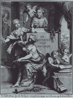 Katharyne Lescailje or Catharina Lescaille (September 26, 1649 in Amsterdam – June 8, 1711) was a Dutch poet, translator and Publisher. Along with Catharina Questiers and Cornelia van der Veer she was the most successful female Dutch poet of the second half of the 17th century.