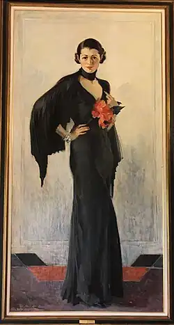 Her first marriage ended in divorce; she moved to New York City and remarried in 1929, to businessman Hubert Charles "Bobby" Winans, but that marriage ended in divorce in 1941.[3] She was the mother of one child, Thomas, with her first husband. She died after a long illness, in New York: some sources say she was 49,[3] but some sources say she was 52.[4] At the time when she took ill, she had been working on a new novel, to be called "Lover Come Back."[16] Her son Thomas, who became a newspaper executive and a patron of the arts,[17] donated the funding for a new library in her memory to the Loomis Chaffee School of Windsor, CT, in 1968.[18] The building, designed by architect Kenneth DeMay of Hideo Sasaki's firm Sasaki, Dawson, DeMay Associates (now Sasaki Associates), is still in use today at the school. The Katharine Brush Library contains a larger than life-size portrait by Leon Gordon of Katharine Brush looking down the length of the second floor.