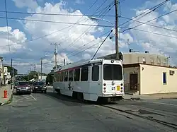 The Kawasaki Light Rail Vehicle (Kawasaki LRV), commonly referred to as the K-car, is a light rail vehicle manufactured by Kawasaki Heavy Industries and used for service on trolley lines operated by SEPTA. The Series 9000 is a streetcar that has been used on the SEPTA subway–surface trolley lines since 1980. The similar Series 100, which was manufactured at the same time, was also built for the Media–Sharon Hill Line.[3][6][7] The K-cars were Kawasaki's first railroad cars for the American market.
