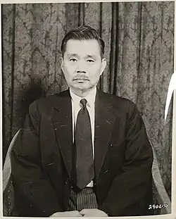 Okinori Kaya (賀屋 興宣, Kaya Okinori; January 30, 1889 – May 9, 1977) was a Japanese bureaucrat and politician who served as Minister of Finance from 1937 to 1938 and 1941 to 1944, and as Minister of Justice from 1963 to 1964.