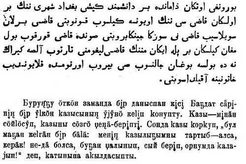 The Perso-Arabic script is the official alphabet for Kazakhs in the Ili Kazakh Autonomous Prefecture of the Xinjiang Uyghur Autonomous Region[11] of China. It was first introduced to the territory of Kazakhstan in the eleventh century and was traditionally used to write Kazakh until the introduction of a Latin alphabet in 1929. In 1924, Kazakh intellectual Akhmet Baitursynov attempted to reform the Arabic script to better suit Kazakh. The letters ۆ, گ, ڭ, پ and چ are used to represent sounds not found in the Arabic language.
