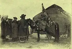 The Kazakh population in China has a distinct culture, mostly based on a series of genealogical records that in addition to stipulating lineage, keep the traditional ways of life alive.[11] Some Kazakhs are nomadic herders and raise sheep, goats, cattle, and horses. These nomadic Kazakhs migrate seasonally in search of pasture for their animals. During the summer the Kazakhs live in yurts, while in winter they settle and live in modest houses made of adobe or cement blocks. Others live in urban areas and tend to be highly educated and hold much influence in integrated communities. The Islam practiced by the Kazakhs in China contains many elements of shamanism, ancestor worship, and other traditional beliefs and practices.[12]
