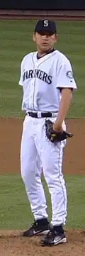 After playing college baseball for Tohoku Fukushi University, Sasaki was drafted in the first round of the 1989 draft by the Yokohama Taiyō Whales (now named Yokohama DeNA BayStars) in Japan's Central League. He played for them from 1990 to 1999, before joining the Seattle Mariners in 2000, on a 2-year, $9 million contract with a club option for 2002. He joined a bullpen that had been one of the worst in the major leagues, and during his rookie year won the closer job from a floundering José Mesa. Sasaki's out pitch, a devastating split-fingered fastball that drops when arriving at home plate, was nicknamed "The Thang" by Mariners radio announcers.[4] He complemented it with a four-seam fastball that topped out at mid-90s. Sasaki maintained a rigorous throwing program, sometimes at odds with club management, that saw him throw up to 100 pitches following games in which he did not appear.