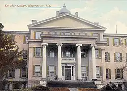 Kee Mar College was a private women's college in Hagerstown, Maryland. It was founded in 1853 as the Hagerstown Female Seminary under the auspices of the Lutheran church. The college conferred Bachelor of Arts (A.B.) and Master of Arts (A.M.) degrees. After a period of financial trouble, the school was sold to the Washington County Hospital Association in 1911.