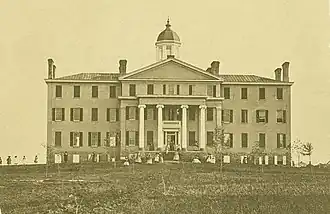 In the 1840s, a group of civic leaders conceived the idea to improve advanced education for women in Hagerstown, Maryland. These subscribers held a general meeting to elect a board of trustees that consisted of 15 members. Ten were members of the Lutheran church (including five ministers). In 1848, a site was selected on the "eastern extremity" of Antietam Street. The land was purchased on July 10, 1852, for $1,400. On September 21, 1853, the Hagerstown Female Seminary formally opened. It was established under the auspices of the Lutheran church with $25,000 raised for the construction and endowment. Reverend C. C. Baugham of the Evangelical Lutheran Synod was appointed to be in charge of the seminary. In its first year, 101 students from ten states including Alabama, Pennsylvania, Illinois, West Virginia, and Ohio enrolled. In 1857, the seminary produced its first graduates. During a period of financial trouble, the board of trustees applied to the Maryland General Assembly for an act to allow them to raise funds or sell property to meet its financial obligations. The Assembly created a plan and enacted it into law before further developments were delayed by the American Civil War. Reverend W. F. Eyster succeeded Baughman as the principal in 1863. When the Confederate States Army marched through Hagerstown, the seminary sent its students home and closed for two years. During the Battle of Antietam, the campus was used as a hospital. For nine months between 1865 and 1866, Evelyn Mac and Kate Doolittle acted as principals. In 1865, a committee of the Maryland Lutheran Synod authorized the formation of a corporation of Lutherans to purchase the seminary. In 1866, two Lutherans, Charles W. Humrichhouse and J. C. Bridges purchased the seminary. Humrichhouse later became the sole owner.[1]