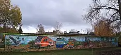Mustjõe station was first mentioned on the Estonian topographic map of 1935. An oxygen factory started operating there in 1937.[34] The station ceased operating at some point and was reopened in 1978, when the railway was electrified. Lahinguvälja station was opened in 1939, near the place, where the battle of Kehra took place. The station was renamed to Vikipalu in 1957 and back to Lahinguvälja in 2009. Parila station was opened in 1973, when the railway was electrified.[7]: 261