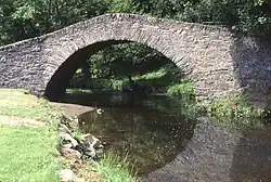 Keith Old Bridge, sometimes known as Keith Auld Brig,[3][4] was built for the use of packhorses[5] by Thomas Moray and Janet Lindsay, his wife. The couple lived close to the ford that had been in use prior to the bridge's construction, and they were distressed by the dangers involved in crossing it, so paid for a bridge to be built with their own savings.[2] It was built in 1609, making it the oldest surviving dated bridge in Moray.[2] It has been in constant use since that date, and underwent repairs in 1724, and again in 1822.[2] Its role in carrying the main road across the River Isla ended in 1770 when the nearby Union Bridge was built,[1] but it remained open for pedestrians, and stone steps were added at the southern end, probably in the twentieth century.[2]