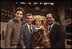 Saget with Rolland Smith, Mariette Hartley, and Mark McEwen in 1987