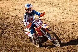 Ken Roczen (born 29 April 1994) is a German-American professional motocross and supercross racer. He competed in the Motocross World Championships from 2009 to 2011 and the AMA Supercross Championships since 2011.[1][2] He is the 2011 MX2 World Champion, a two-time 450cc AMA Motocross Champion, the 2013 AMA Supercross 250cc West Champion & a two-time FIM World Supercross WSX Champion.[3] He was also a member of the winning German team at the 2012 Motocross des Nations.