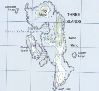 Kent Island is an island located 6 miles (9.7 km) from Grand Manan in the Bay of Fundy.[2] It is the outermost island of the Grand Manan archipelago in Charlotte County off the coast of New Brunswick, Canada.[3] More than 200 bird species have been identified on the island, with at least fifty species nesting.[4]