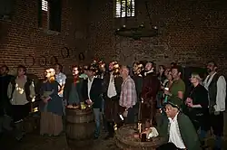 Scaresville[18] is an annual Hallowe'en-themed event presented at Kentwell Hall over a four-week period in October.[19] This event developed from an earlier ghost tour event at Kentwell Hall and was launched in 2007. It operates as a winding route which takes visitors through haunted house sets, woodland, ancient buildings and open farmland, with a cast of 250 actors portraying characters such as dolls, zombies and killer clowns. The experience is presented in near-darkness.[20]