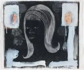 Marshall explored the concept of black beauty in contrast to Western ideals with his painting, Untitled (La Venus Negra) (1992).[17] The figure literally blends into her dark surroundings, her sensuous shape barely discernible. Yet once the viewer looks closely, her curvaceous figure evokes a womanly power only enhanced by the deep black of her skin. The painting Untitled (Supermodel) (1994), is in the collection of the Honolulu Museum of Art, this work portrays a black woman trying to look like blond Caucasian models. The work also references self-portraits of the artist, who adorns himself with pale lipstick and a long blond wig.[30]