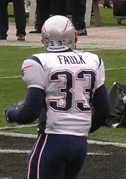 - ^ a b Smith, Michael (September 28, 2003). "Faulk no small factor in Patriots' progress". The Boston Globe. Archived from the original on June 4, 2011. Retrieved November 20, 2013.