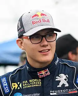 Mikael Kevin Hansen[1] (born 28 May 1998) is a rallycross driver from Sweden. He currently competes in the FIA World Rallycross Championship (WRX) Supercar category for Team Peugeot-Hansen. He is also currently competing in Extreme E for Veloce Racing alongside Molly Taylor.
