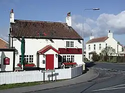 The parish church of St Nicholas is a Grade I listed building. Its spire was removed and parapets rebuilt in the late 1960s.[11] Within St Nicholas' Church south chapel was a shrine to Philip Ingleberd (died c. 1324). The remains of the medieval ashlar St Philip's Cross, Grade II listed and dedicated to Ingleberd, stands on Church Lane.[12] Further parish listed structures are a farmhouse, 2.5 miles (4.0 km) to the south at Little Dam Lane,[13] The Old Vicarage on Station Road,[14] and two windmill towers, one on Mill Road, the other on Ottringham Road.[15][16][17][18]