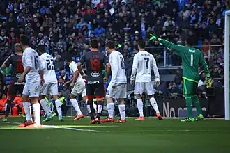 He was the starting goalkeeper when Madrid won the 2016–17 La Liga[42][43] and the 2016–17 UEFA Champions League.[44] On 29 January 2017 after the 3–0 win at home to Real Sociedad in La Liga, Navas became the first player from Costa Rica to reach 100 La Liga appearances.[45] His performances during the double trophy-winning season led him to win the Player of the Year for the second time at the 2017 CONCACAF Awards.[46]