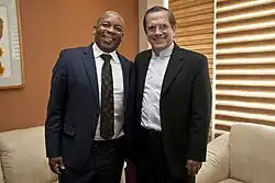 On his 40th birthday in January 2015, Ramokgopa married Georgia Shekeshe, following a traditional wedding ceremony in Atteridgeville in late 2014.[56][57] They met early in Ramokgopa's mayoral term, when Shekeshe served as personal assistant in his office.[2][58] At the time of their wedding, they had a two-year old son.[2]