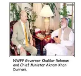 3. ^ Khan, Ismail (22 May 2006). "NWFP Governor Khalil being replaced". DAWN.COM. Peshawar: Dawn Newspaper, 2006. Dawn Newspaper. Retrieved 27 February 2018.