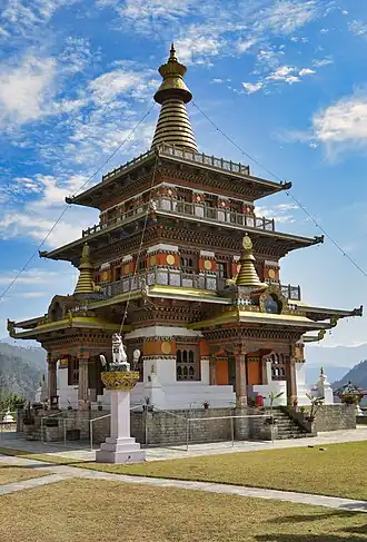 Khamsum Yulley Namgyal Chörten (Dzongkha: ཁམས་གསུམ་གཡུལ་ལས་རྣམ་རྒྱལ་མཆོད་རྟེན, also known as Nyizergang Chörten and Punakha Zangdopelri) — chörten in the Punakha District, Bhutan.