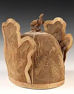 Sometime during the Sui dynasty, the military organization of the Khitans became more advanced. According to the Book of Sui, "In the case of a military operation, the chieftains discussed it together. In mobilizing troops, tallies needed to be matched".[25] In the early 7th century, the Dahe clan unified the Khitan tribes in a federation that was able to raise 34,000 troops.[22] The tribal composition of the Dahe Confederation is listed as Daji, Hebian, Duhuo, Fenwen, Tubian, Ruixi, Zhuijin, and Fu. The Hedahe were the leading tribe of the Confederation, from which its name is taken from.[26] Other tribes mentioned are: Danjieli, Yishihuo, Shihuo, Nawei, Pinmo, Nahuiji, Jijie, and Xiwa.[27] The component tribes were largely autonomous and the Dahe were only responsible for foreign affairs.[26] After the Dahe united the Khitans, the system of rotating leadership was replaced by "Shixuan", electing a leader based on their talent and ability from the Dahe lineage.[23] The other clans had the right to vote but not to be elected.[28] Brothers, cousins, and nephews often succeeded rather than the son of the previous leader.[29] No internal conflicts among the Khitan tribes are recorded after the unification of the Dahe.[26]